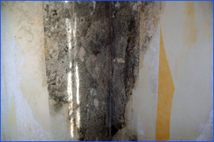 - opstijgend vocht: gevolg kouder oppervlak waardoor condensatie ontstaat ter hoogte van de vloerpas tot op een hoogte van 1,2 m.